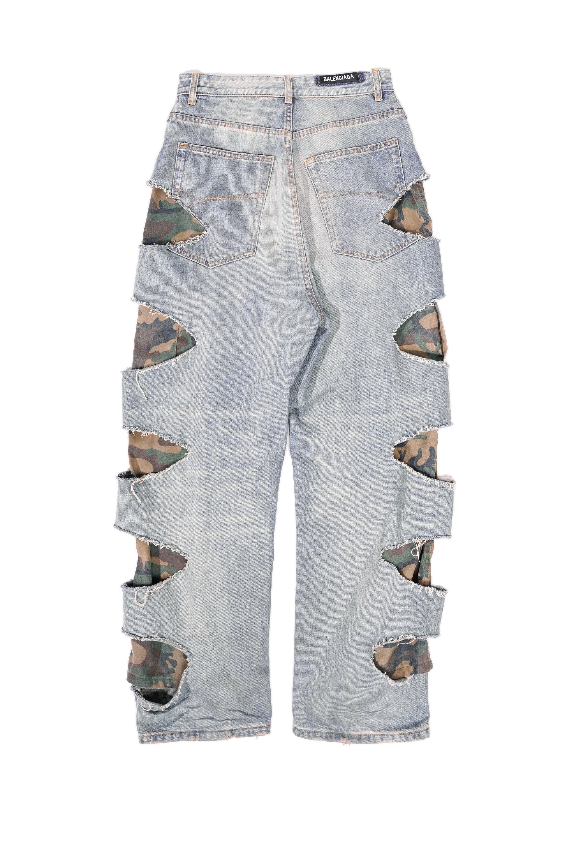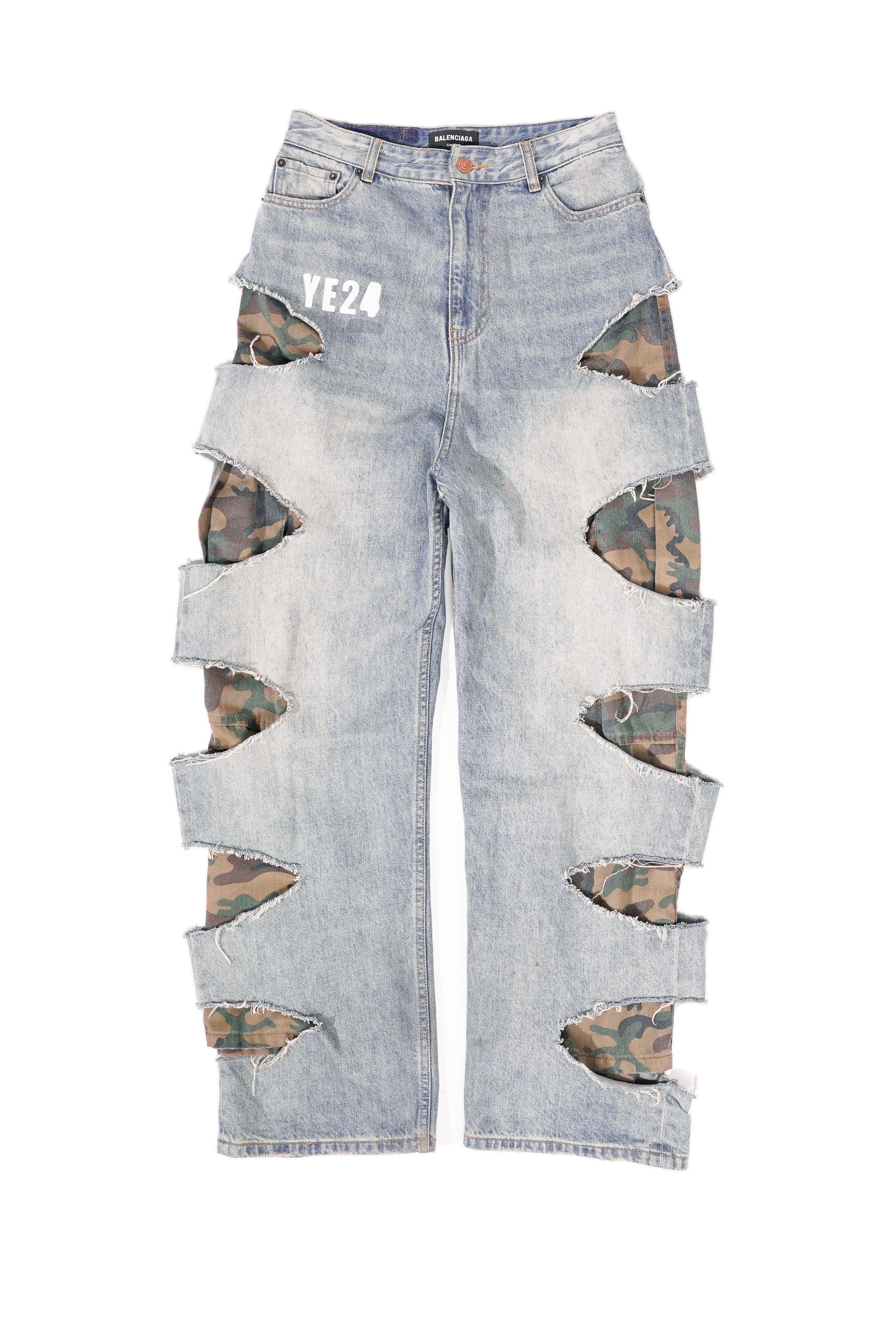Balenciaga 2021 Ye24Camo Slashed Baggy Denim Jeans